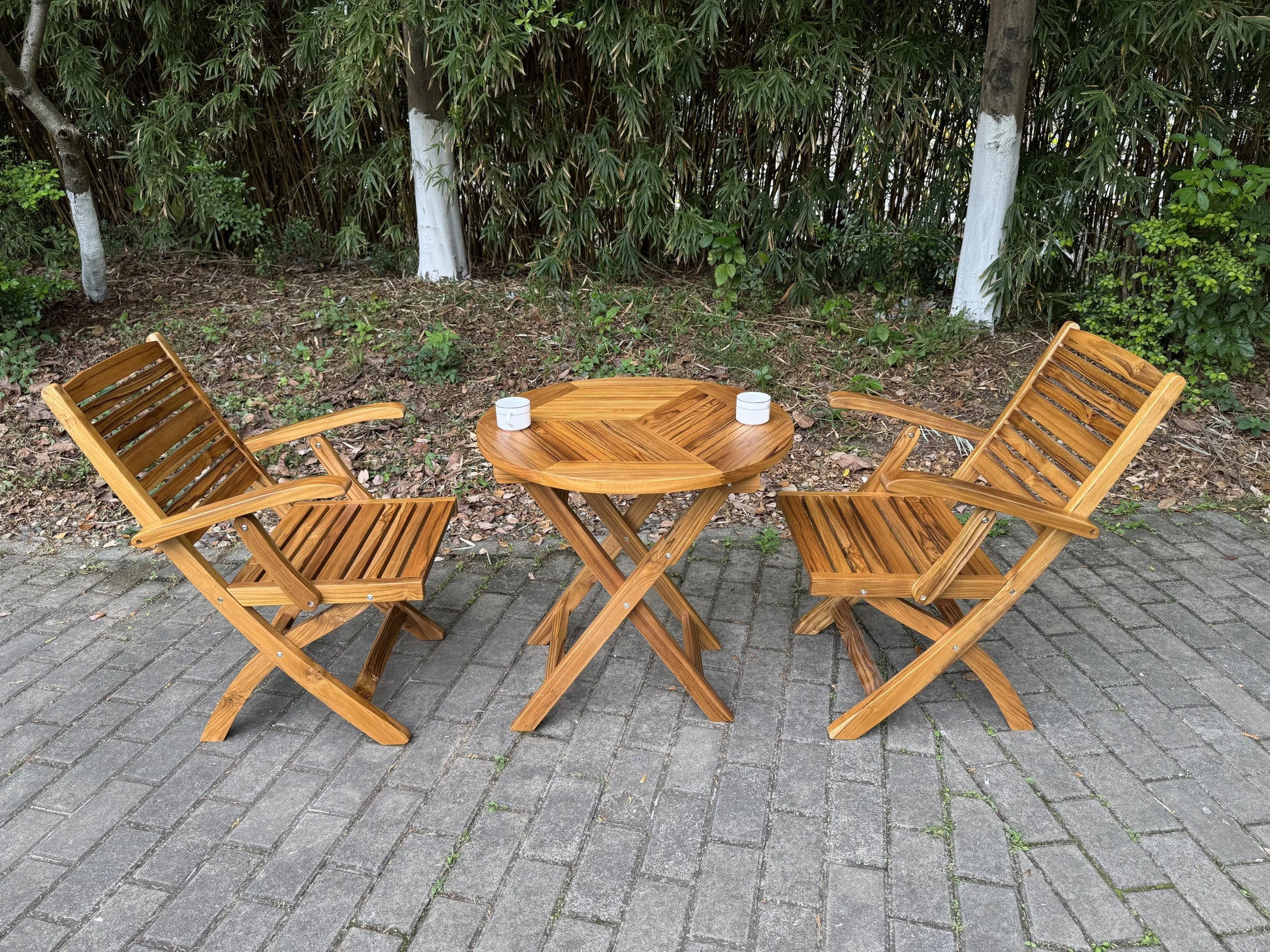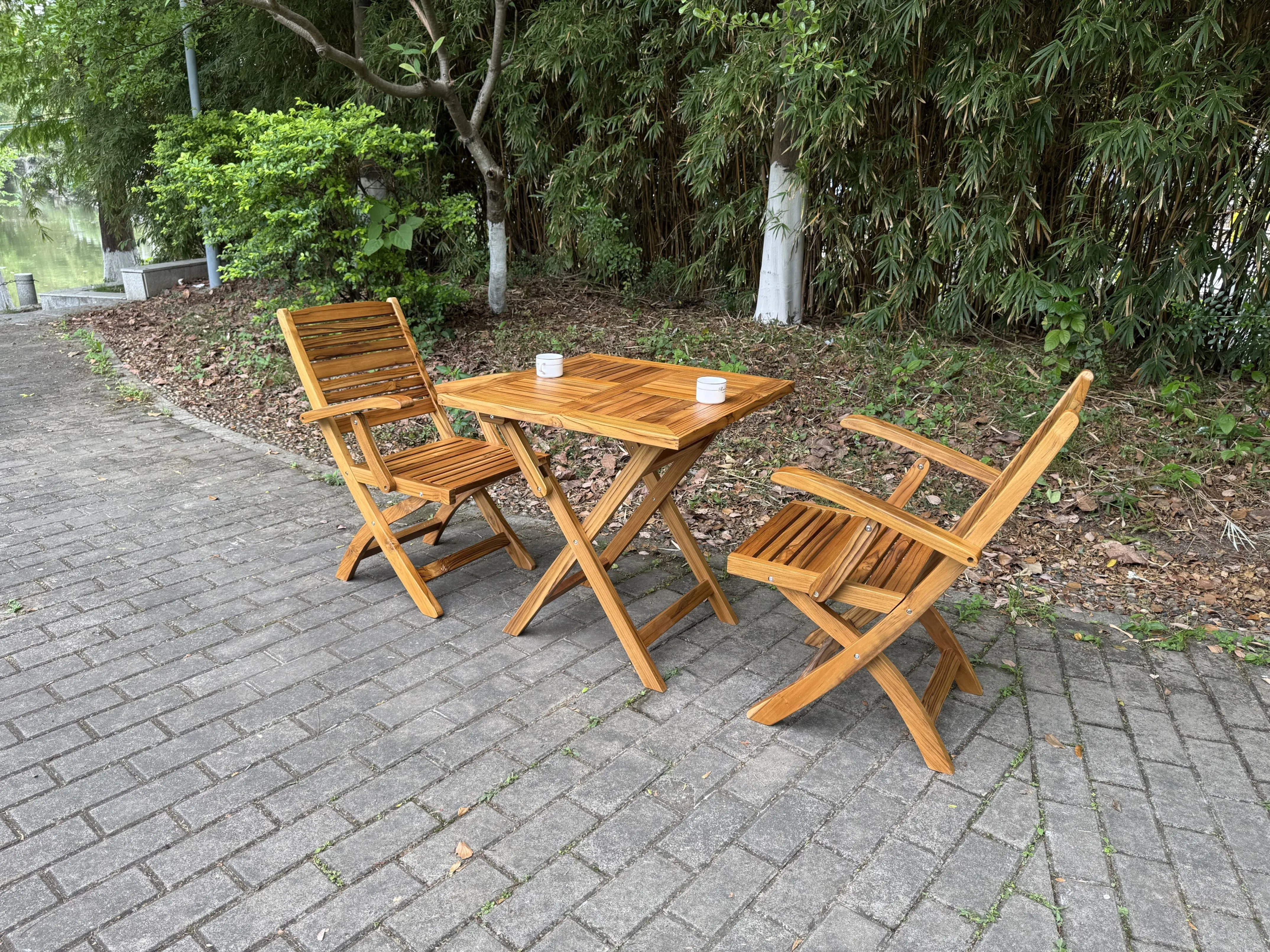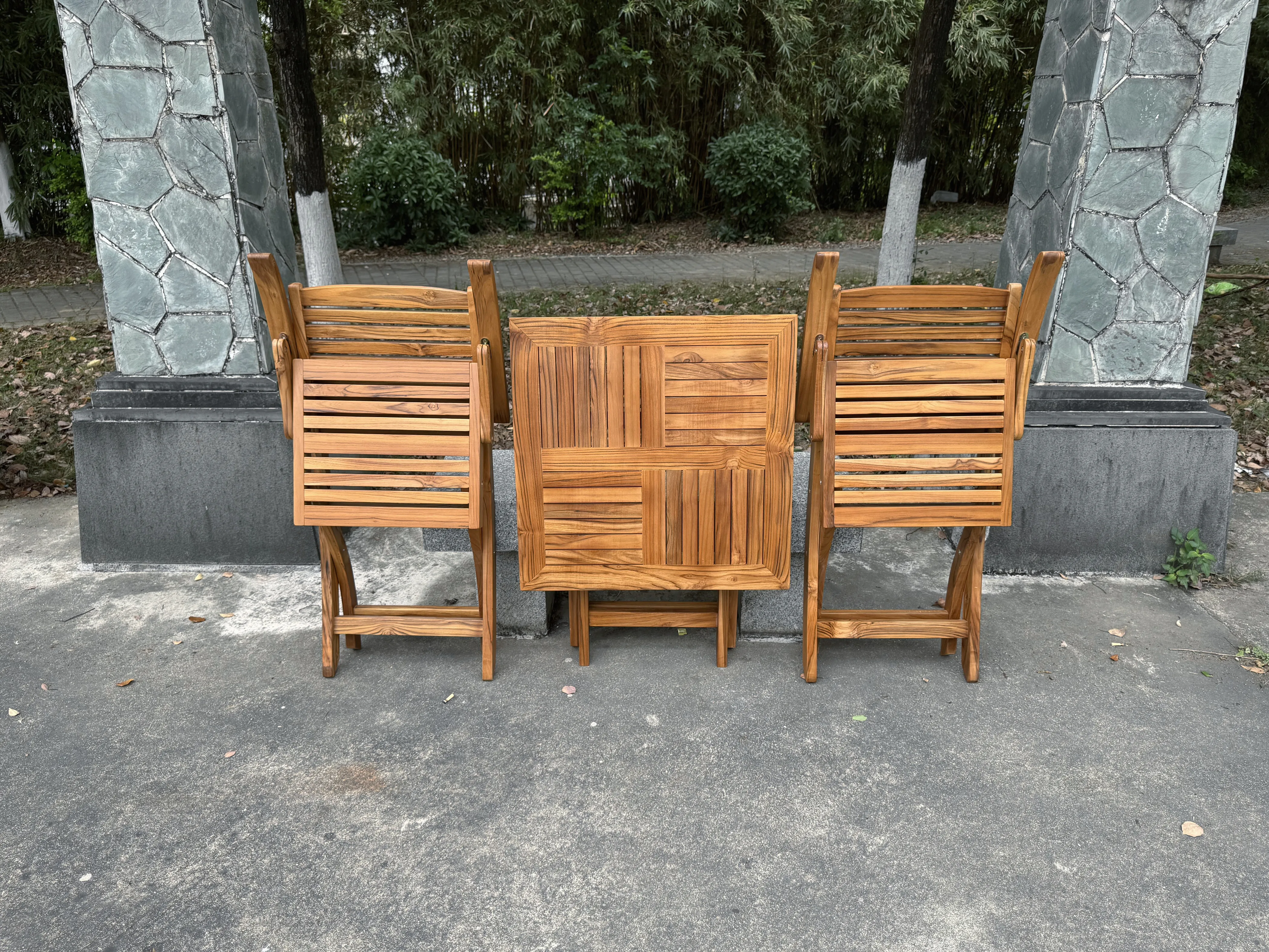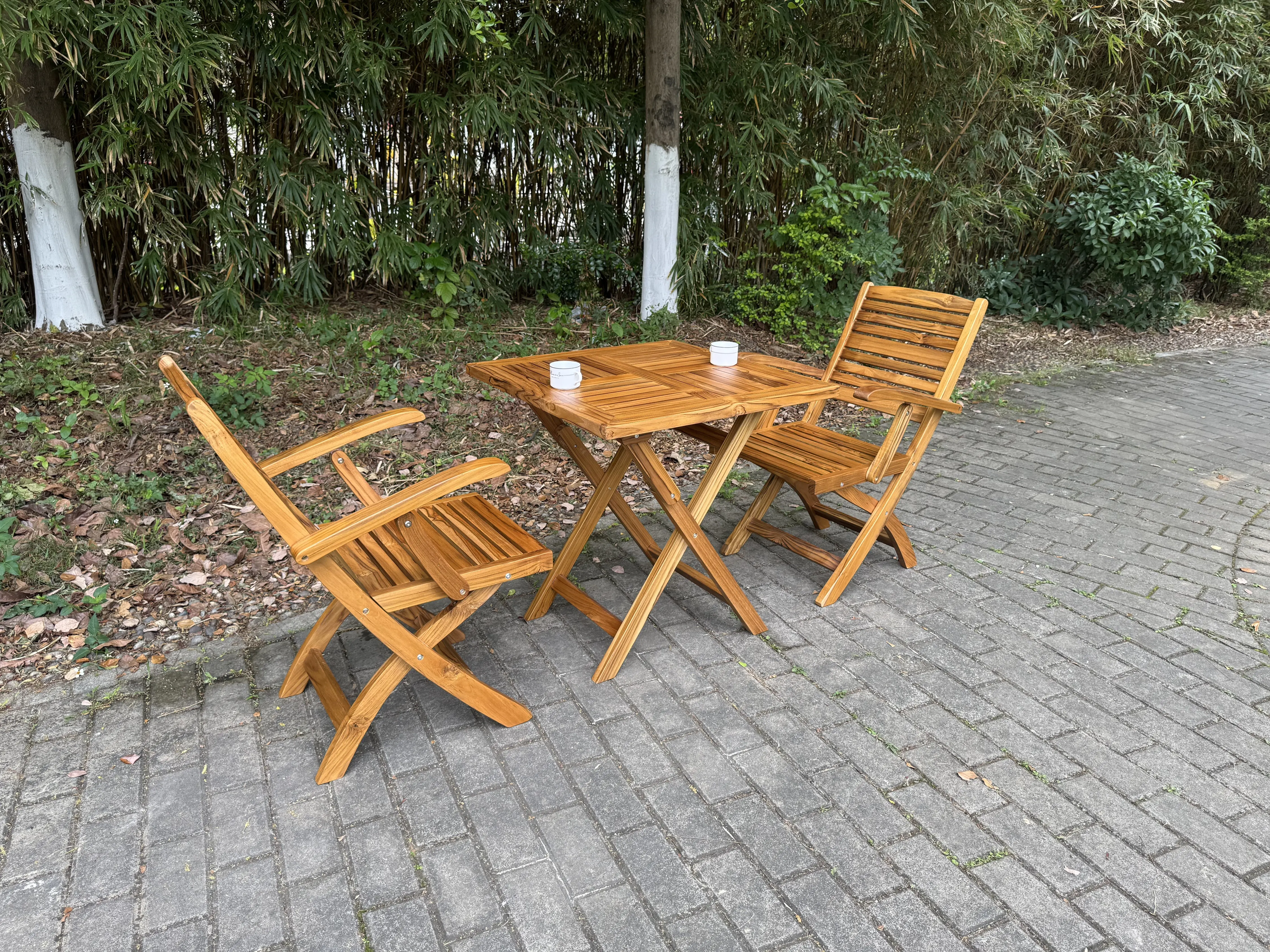3Pcs Foldable Teak Outdoor Furniture Set Space-Saving Garden Table/Chairs