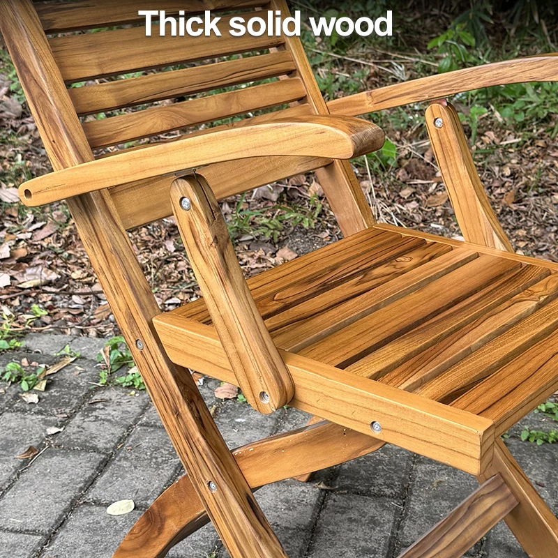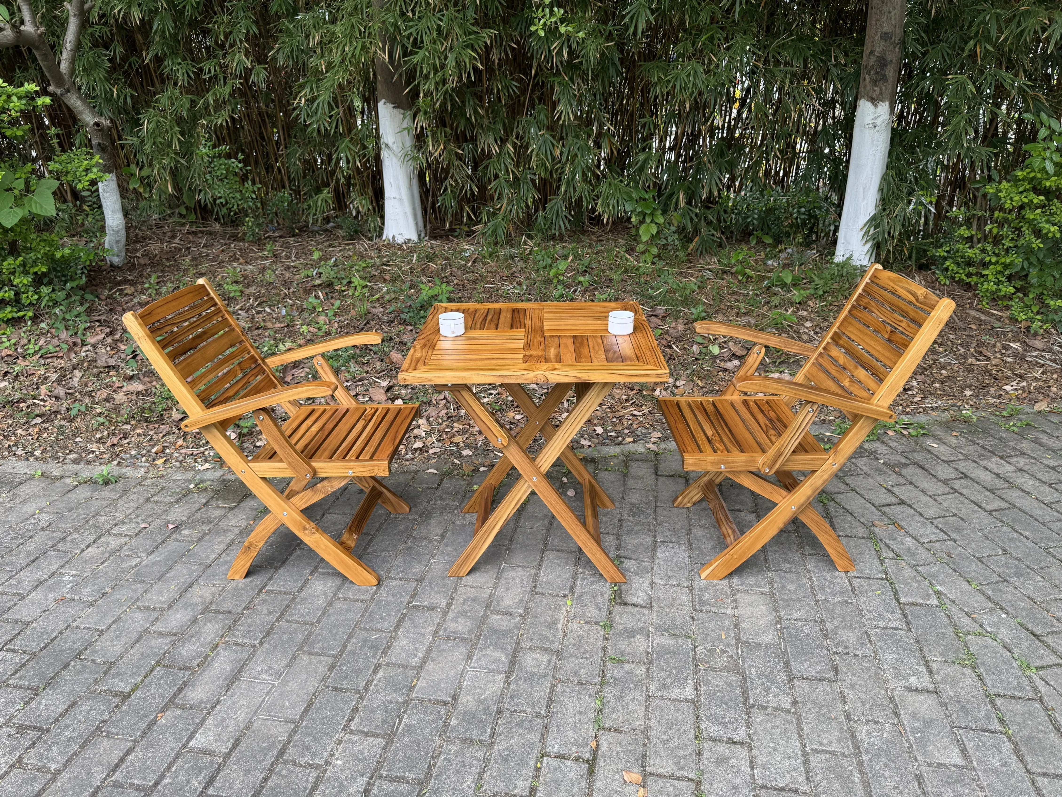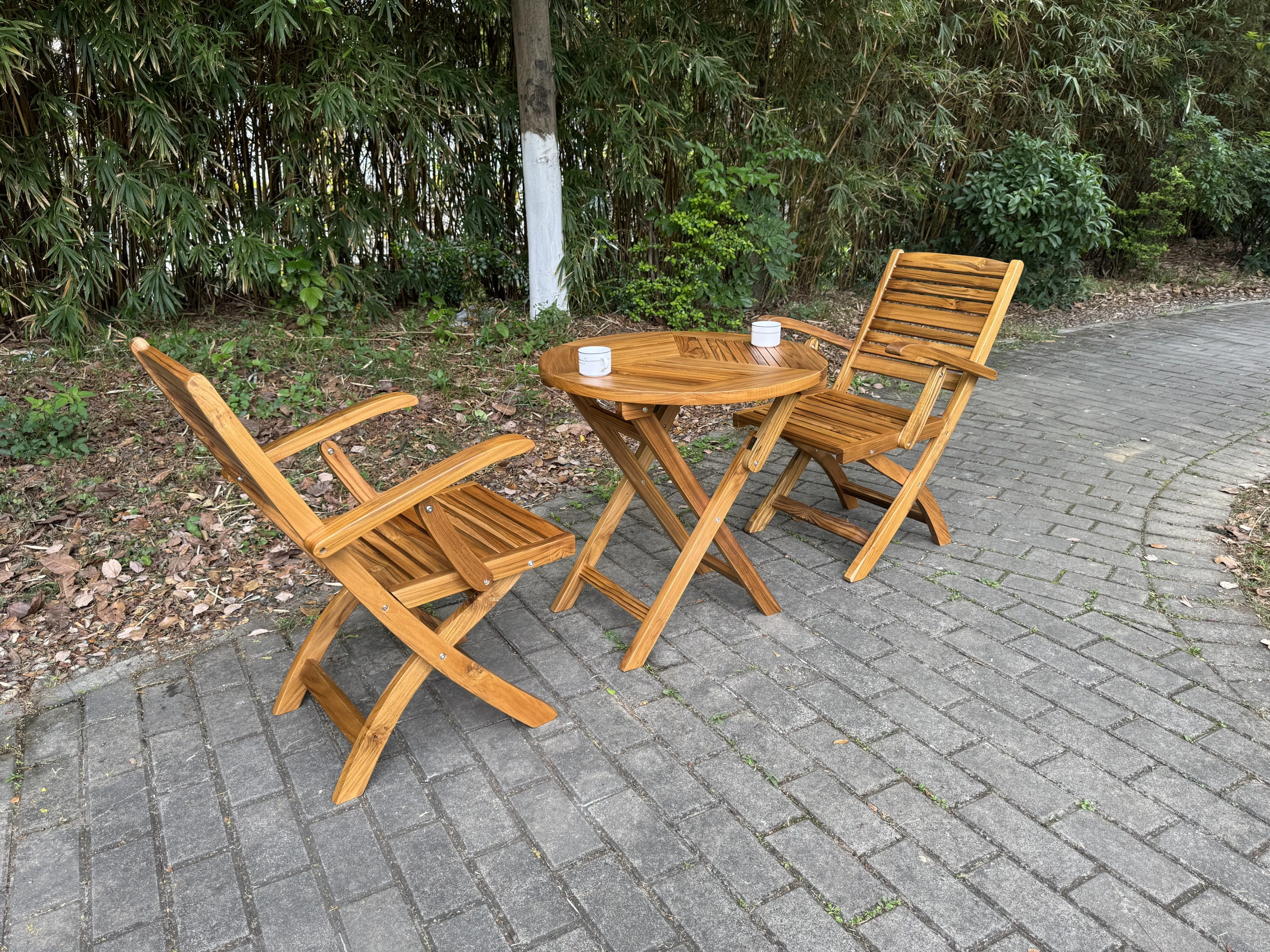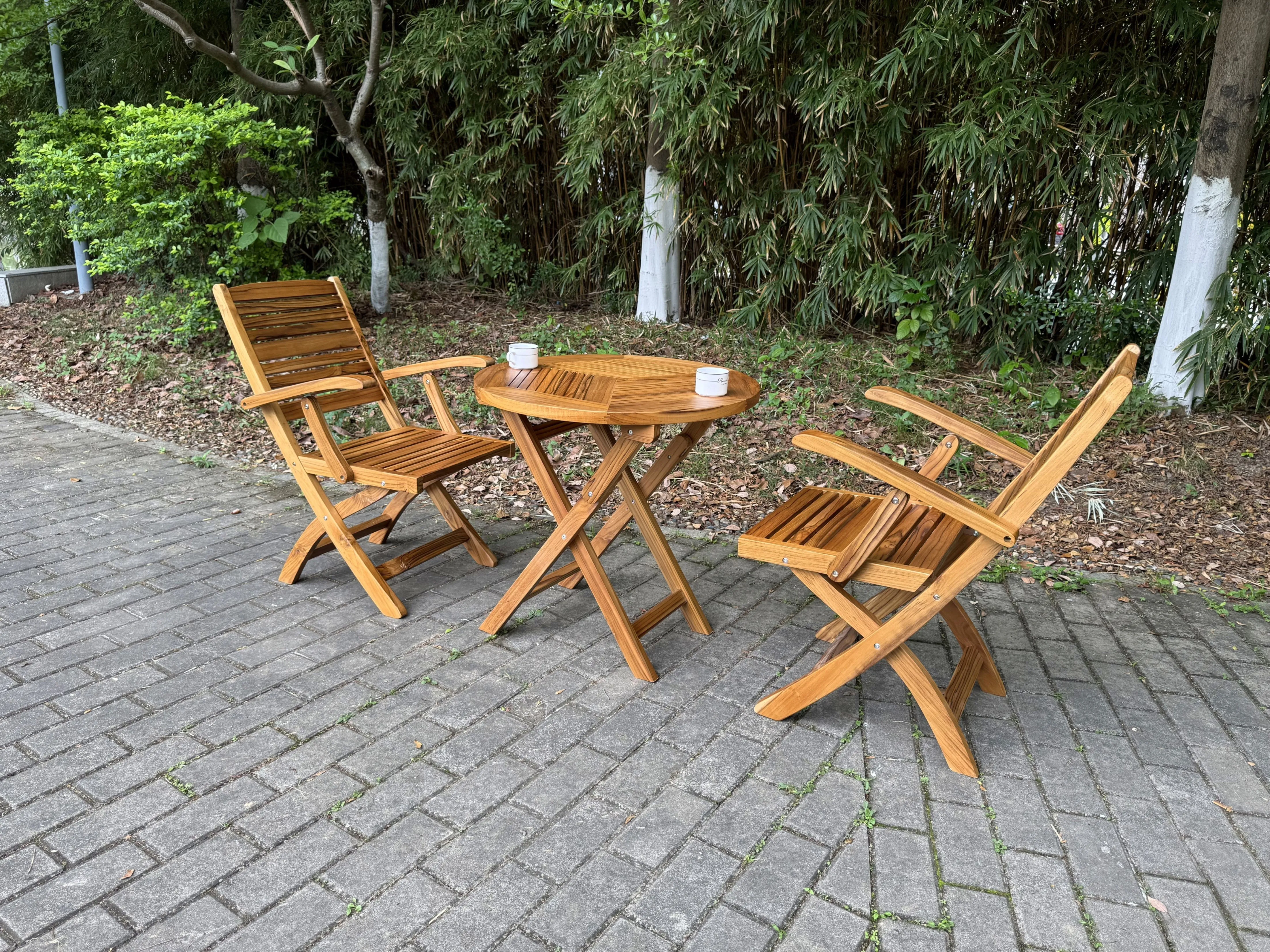 3Pcs Foldable Teak Outdoor Furniture Set Space-Saving Garden Table/Chairs